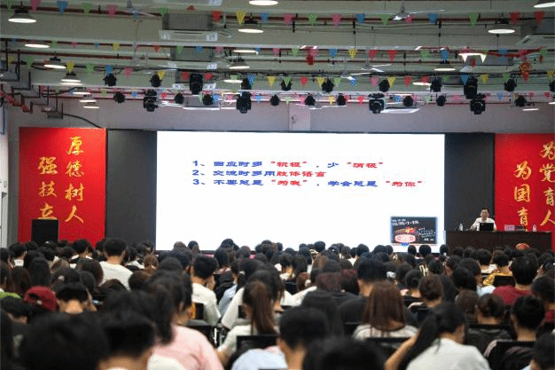 艾军以《大学新生的角色转换与心理适应》为题结合多年心理健康教育经验和具体案例围绕选择困扰、人际困扰、学习困扰、人生困扰四个方面详细阐述了新生的角色转换与心理调适的方式方法