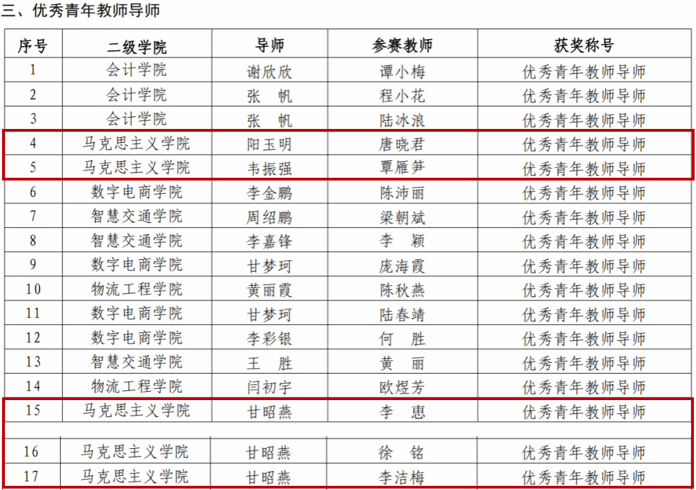 12月10日,学校公布了首届青年教师教学基本功大赛结果,马克思主义学院教师凭借扎实功底与出色表现斩获多项荣誉:唐晓君、覃雁笋两位教师荣获特等奖,李惠、徐铭、李洁梅三位教师获一等奖,另有黎林娟、岑叶珍等4名教师获二等奖,覃程、李曼等10名教师获三等奖。此外,马克思主义学院荣获大赛“优秀组织奖”,阳玉明、韦振强、甘昭燕老师获评“优秀青年教师导师”。