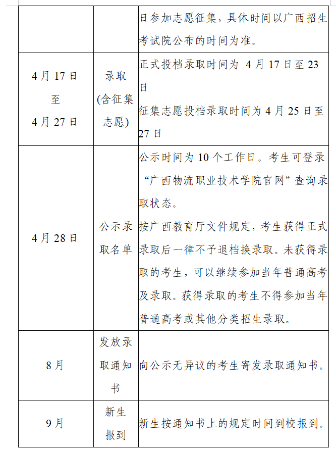 第二十五条 录取名单经广西招生考试院录检通过后,于2025年4月28日前,在“广西物流职业技术学院官网”进行公示,公示10个工作日后,按规定发放录取通知书,公示的信息保留至2025年底。
