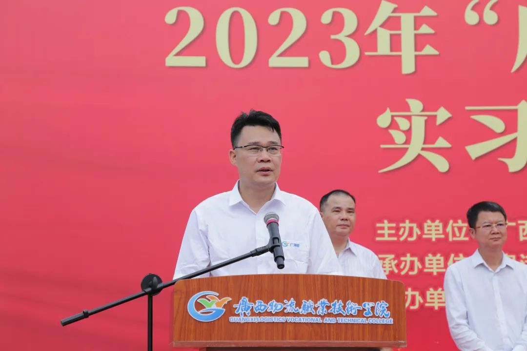 2023年5月17日,广西物流职业技术学院2023年“启航广物院 就业在行动”实习和就业岗位招聘会启动仪式在起航广场举行。贵港市二级巡视员吴卓奎,广西现代物流集团有限公司副总经理王辉,贵港市人力资源和社会保障局党组书记、局长陈锦秀,广西物流职业技术学院党委书记韦光茂,贵港市工业和信息化局二级调研员黄凯峰出席启动仪式。广西物流职业技术学院党委副书记、院长朱海强主持启动仪式。