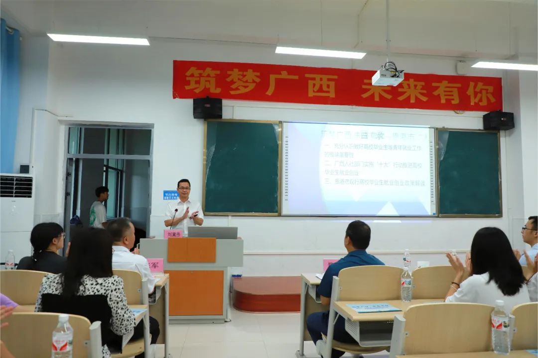 刘冀伟对广西人社部门实施“十大”行动促进毕业生就业工作的内容进行了解读,并重点讲解了贵港市高校毕业生就业创业有关政策。