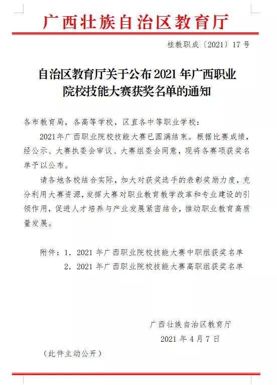 为提高学生技能实践水平,充分展示学院教学成果和学生风采,提高学生实践能力和创新能力,我院组织师生参加2021广西职业院校技能大赛。