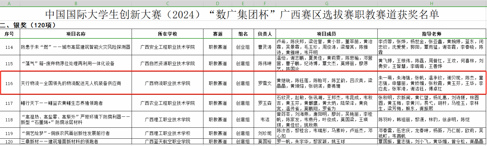 近日,中国国际大学生创新大赛(2024)“数广集团杯”广西赛区选拔赛获奖名单揭晓。我校共斩获银奖1项,铜奖7项,实现了我校在创新创业竞赛中的新突破!