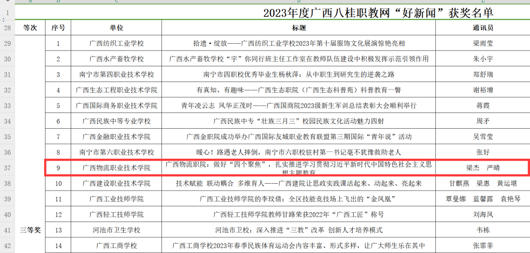 1.广西物流职业技术学院荣获新闻宣传优秀组织奖;