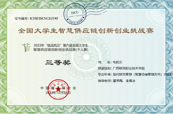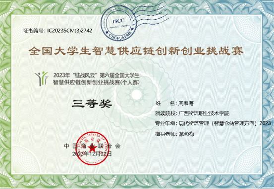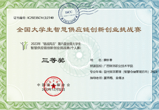 喜报!物流管理学院学子在2023年“链战风云”第六届 全国大学生智慧供应链创新创业挑战赛个人赛中喜获佳绩