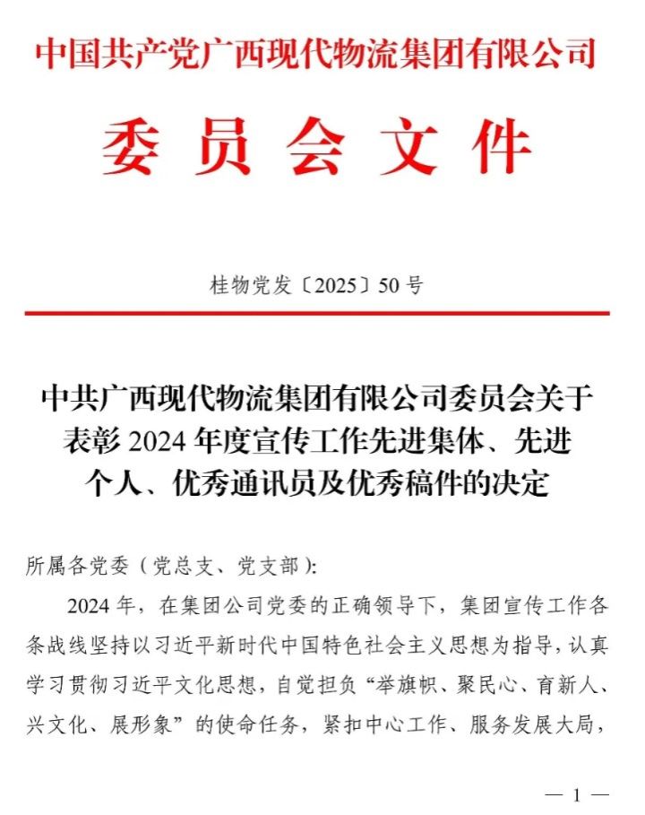 近期,集团公司发布《中共广西现代物流集团有限公司委员会关于表彰2024年度宣传工作先进集体、先进个人、优秀通讯员及优秀稿件的决定》,我校宣传队伍凭借过硬的业务能力和突出的工作成效,斩获多项荣誉。具体获奖如下: