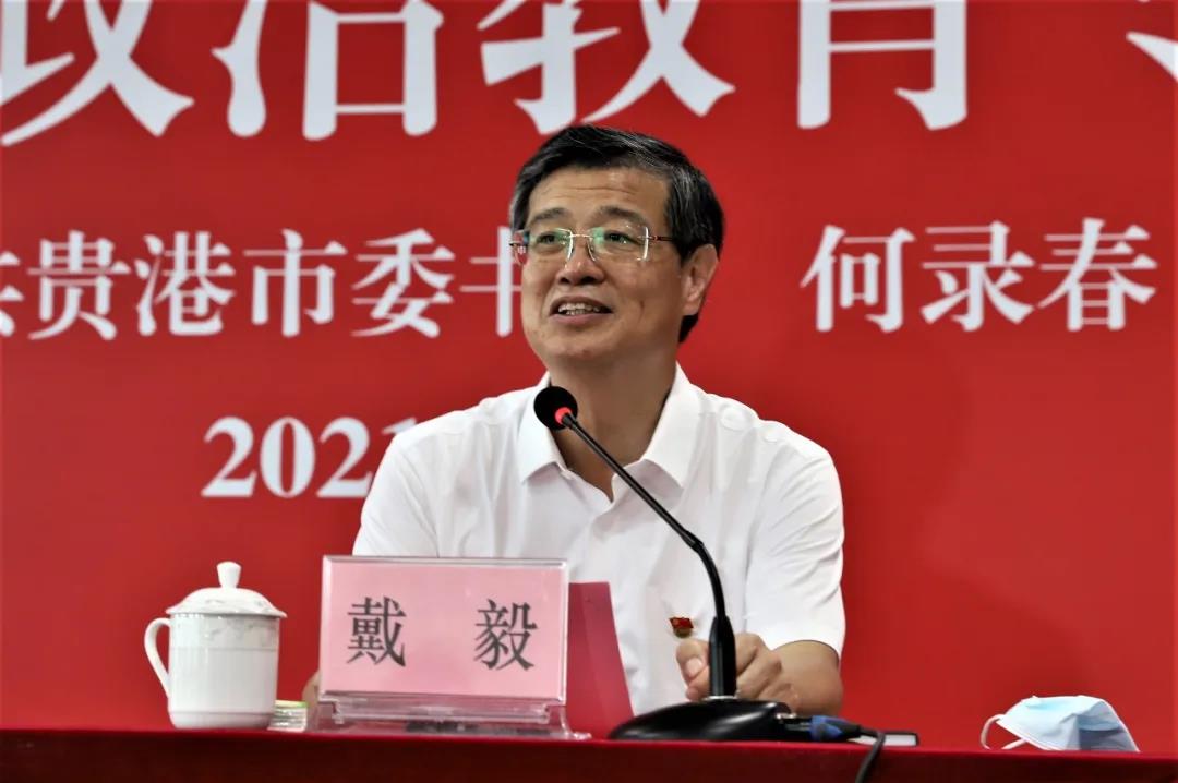 9月25日上午10时,贵港市委书记何录春以《弘扬优良革命传统 增强志气骨气底气在勇担时代重任中书写亮丽青春》为题,向广西物流职业技术学院师生作2021年思想政治教育专题报告。报告会由广西现代物流集团党委书记、董事长戴毅主持。