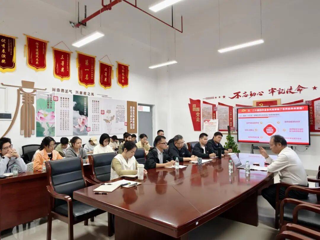 ▲贵港市宣讲团成员,党委委员、副校长、宣传部部长梁杰面向星空彩票3D版职工及学生代表宣讲党的二十届四中全会精神
