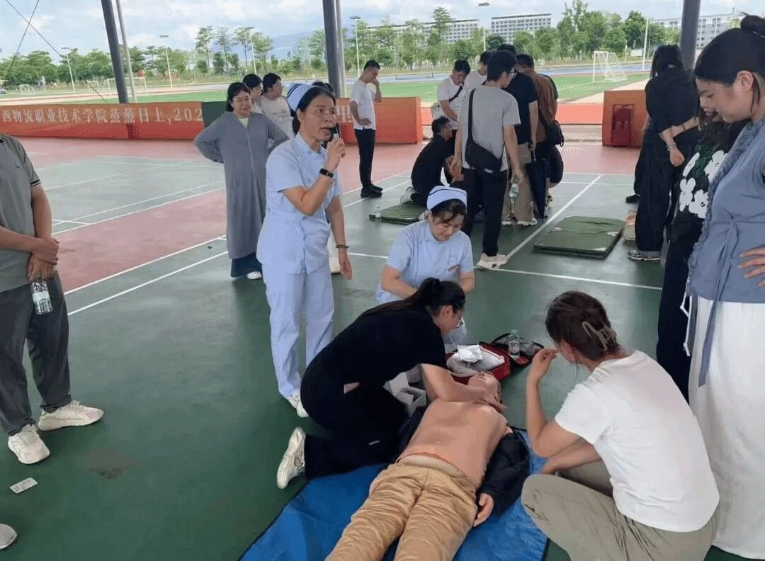 本次培训同时邀请贵港市妇幼保健院门急诊大科护士长兼急诊科、发热门诊护士长吴姗开展突发疾病应急处置流程培训,内容涵盖“常见突发疾病识别”“心肺复苏(CPR)操作流程与注意事项”“急救电话拨打与信息报送规范”“急救电话拨打与信息报送规范”“日常健康观察与信息记录要求”等,全面提升辅导员与宿管人员的应急救护能力。