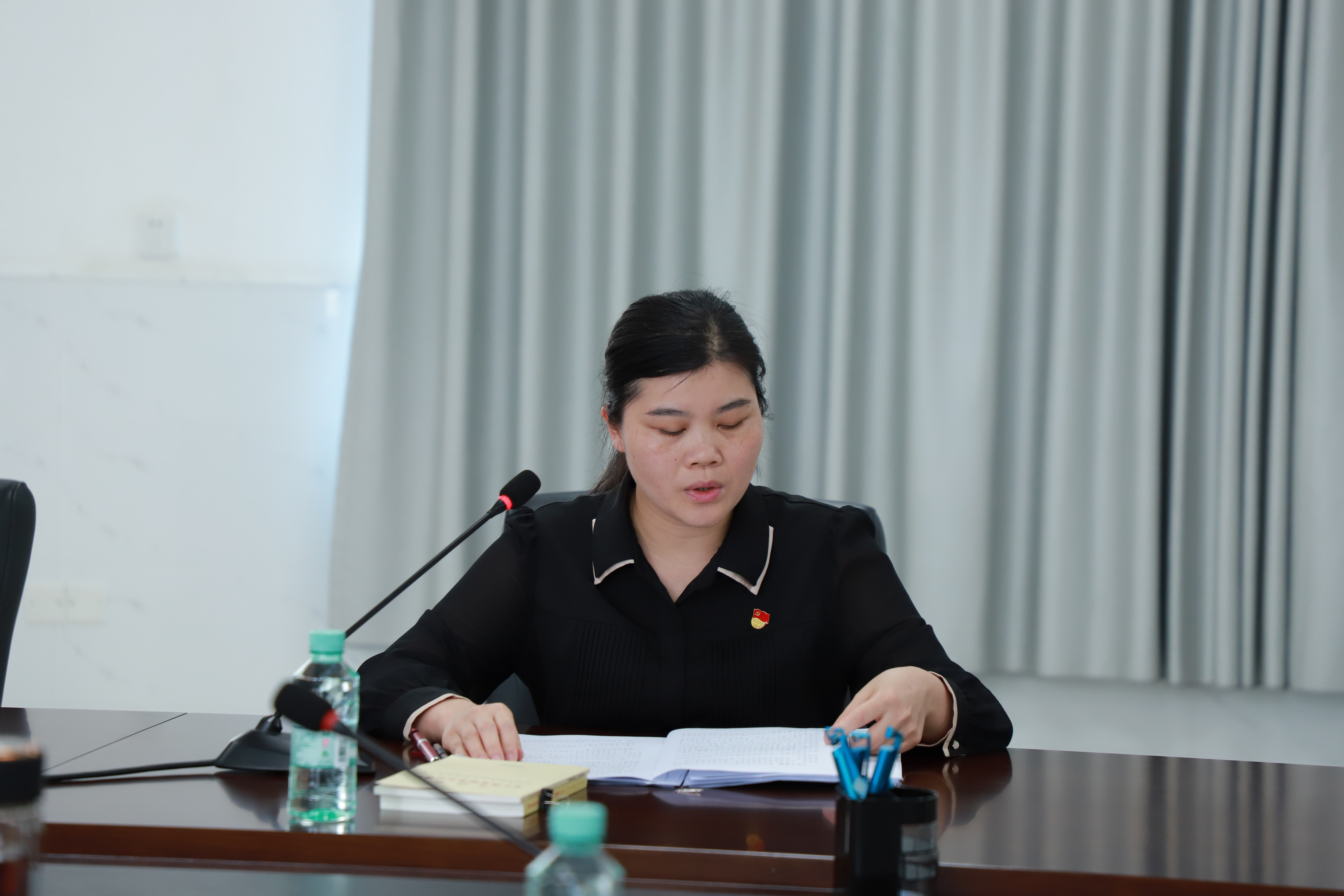 2023年5月31日,为深入学习贯彻习近平新时代中国特色社会主义思想主题教育,机关第二党支部在独秀南楼401会议室召开了主题教育阅读分享活动。学院党委委员、纪委书记覃丽燕以普通党员身份参加活动。活动由机关第二党支部书记丘彩云主持,机关第二党支部全体党员、入党积极分子及第二党支部所辖部门集团党委管理的中层干部参加活动。