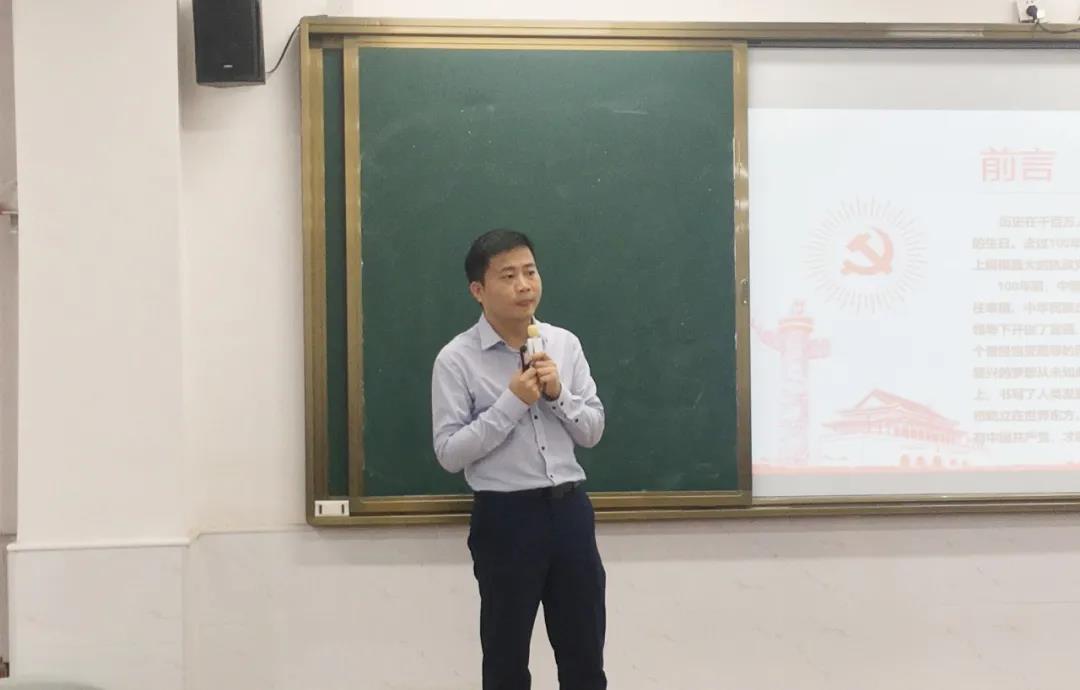 4月20日下午,为迎接中国共产党成立100周年,学院教学党支部“商海名师大讲堂系列之建党百年”思政课正式开讲。教学党支部书记梁杰老师讲授以“光辉历程—中国共产党的一百年(1921-2021)”为题的首期思政课,教学党支部全体党员及学生代表120余人参加活动。