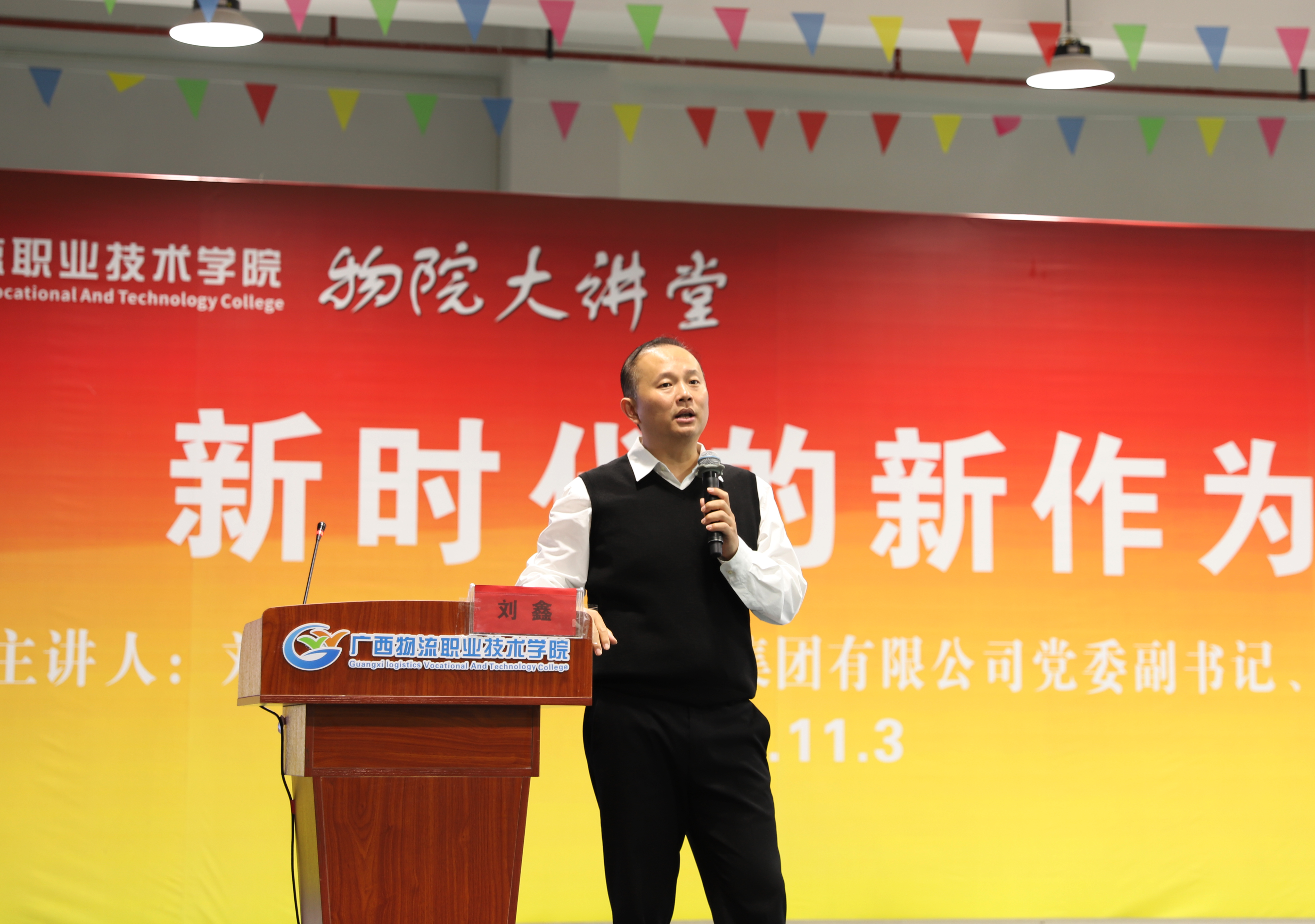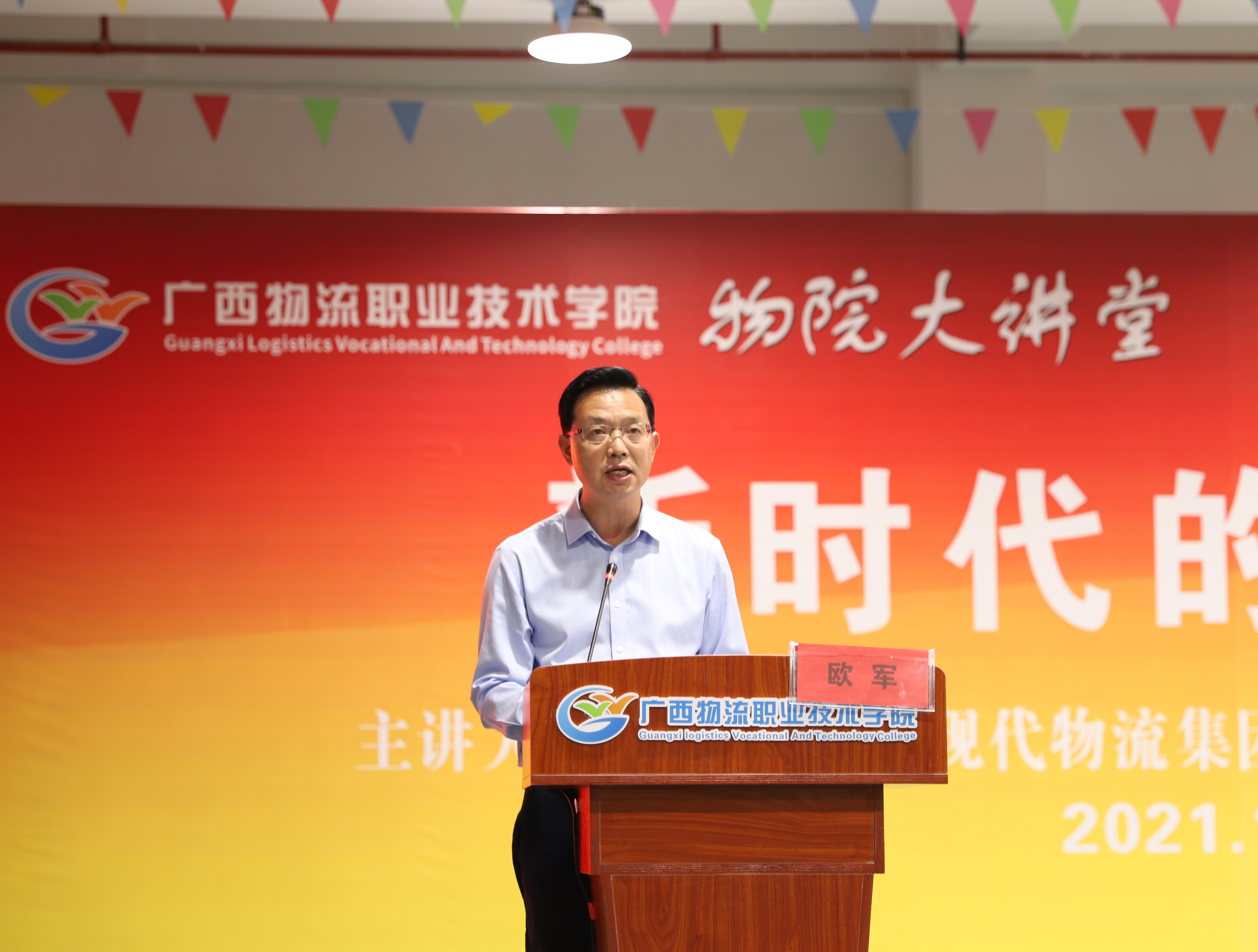 11月3日下午,广西现代物流集团党委副书记、总经理刘鑫以《新时代的新作为》为题,向学院师生作2021年思想政治教育专题报告。报告会由集团公司党委副书记,学院党委书记欧军主持。
