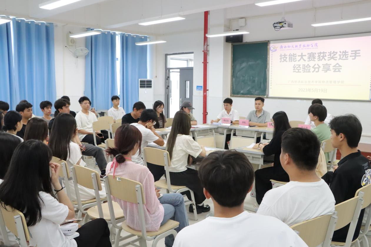 5月19日,物流管理学院结合2023年职业教育活动周工作安排,以“技能,让生活更美好”为主题,举行物流管理学院技能大赛获奖选手经验分享会。物流管理学院党支部书记、院长黎聪出席活动。技能大赛指导老师郭蛟、梁小孟、覃毅康参加活动,50余名2021、2022级学生现场聆听。
