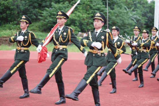 英姿飒爽的国旗护卫队迈着铿锵有力的步伐入场。当庄严的国歌响起,全体师生行注目礼,怀着崇高的敬意注视着国旗冉冉升起。