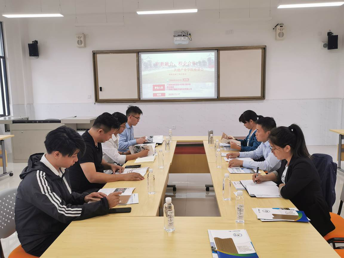 11月17日下午,广西物流职业技术学院物流商学院(简称“物流商学院”)与京东集团、广西南宁鑫航天域科技有限公司(简称“鑫航天域”)一行人在宜贵北楼302教室召开共建产业学院座谈会,座谈会由商学院负责人梁杰主持。