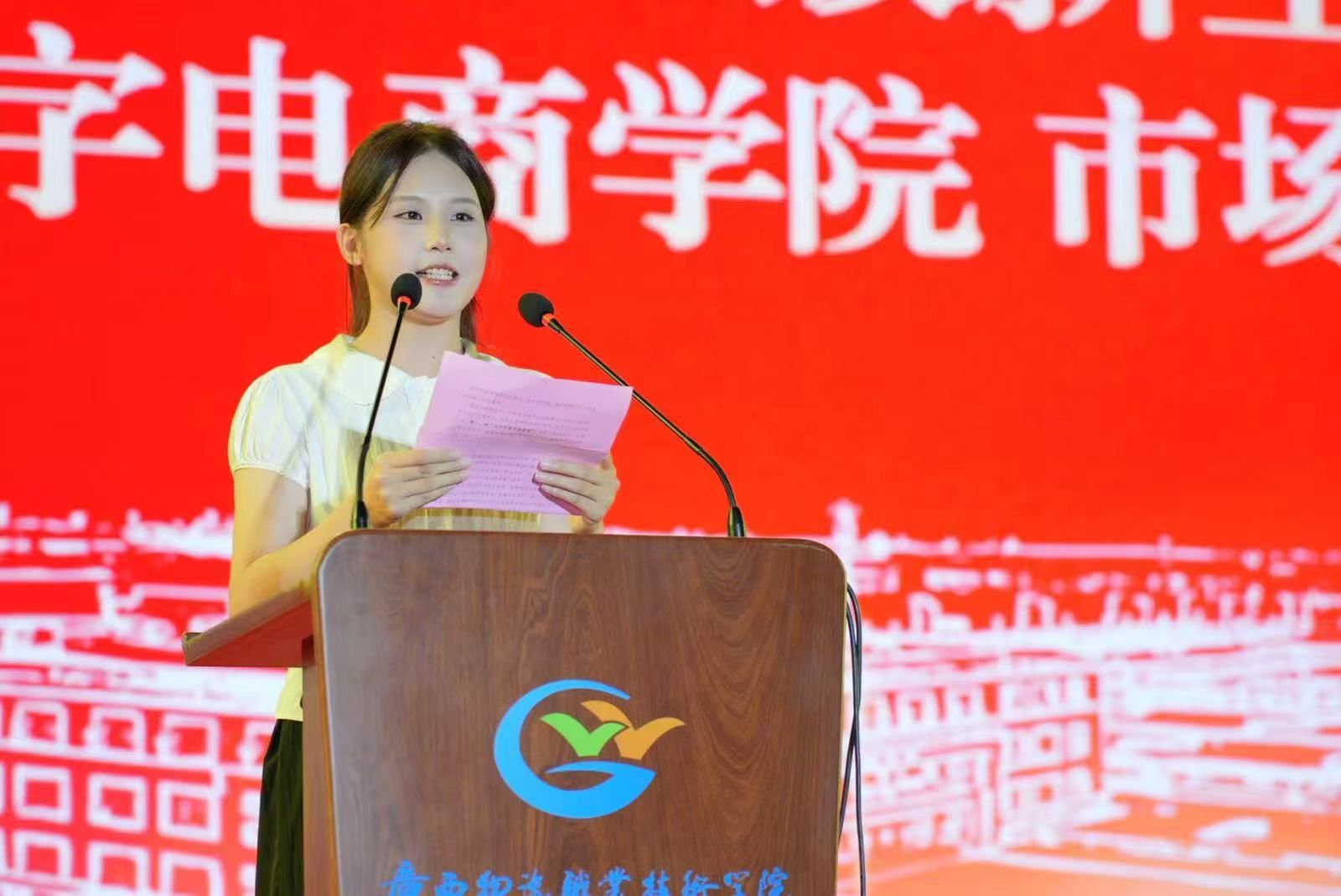 数字电商学院市场营销专业252班邱秀莹作为新生代表发言。
