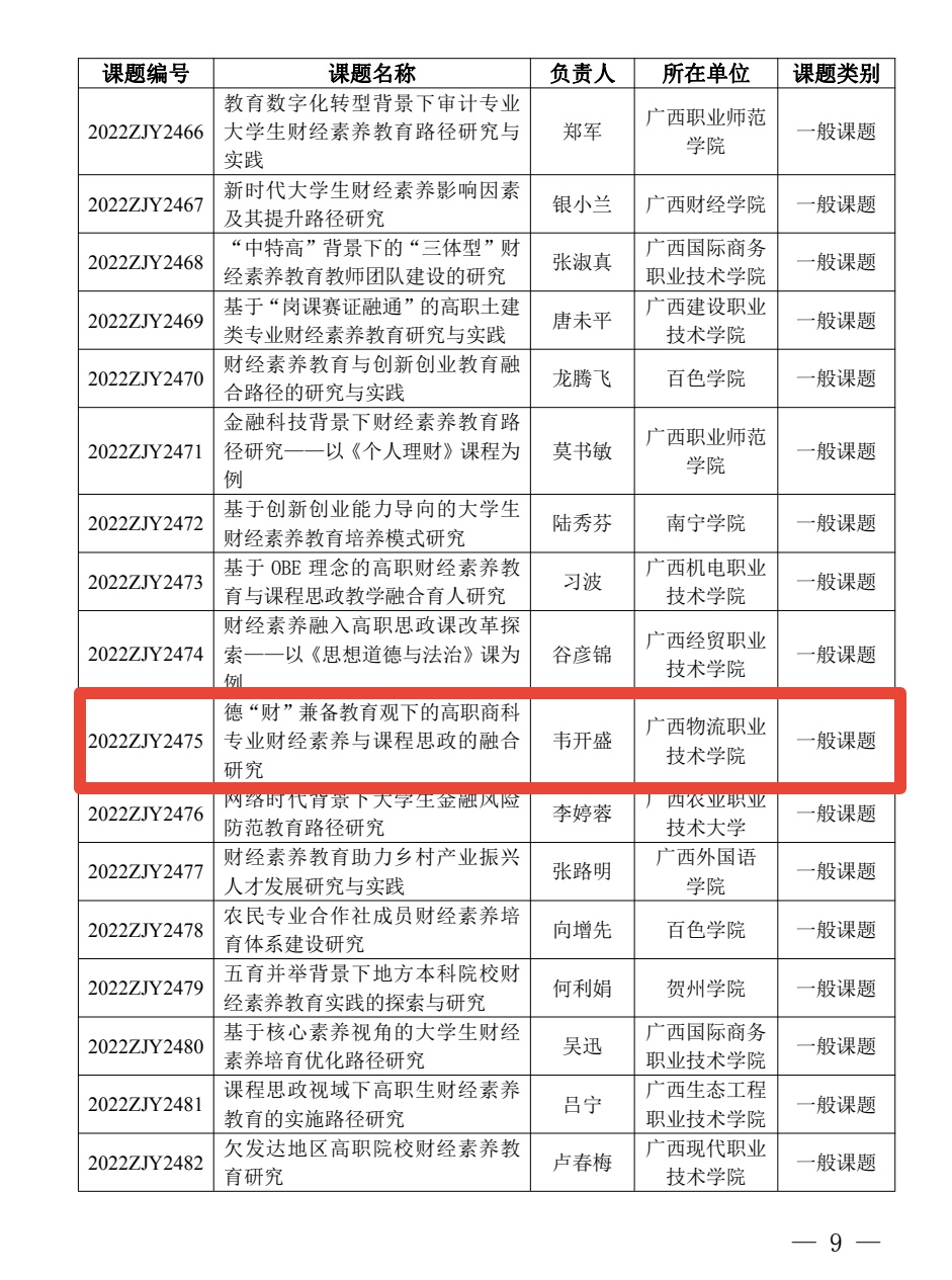 4项立项!我校申报广西财经素养教育研究专项课题获批立项